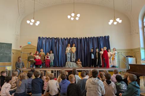 In diesem Schuljahr brachte unsere Theater-AG das Stück „Martin – Ein Name, zwei Wege“ auf die Bühne. Die Schülerinnen und Schüler erzählten eindrucksvoll die Geschichten von St. Martin und Martin Luther – zwei Menschen, die auf ganz unterschiedliche Weise gezeigt haben, wie wichtig Mut, Nächstenliebe und das Teilen für unser Zusammenleben sind.