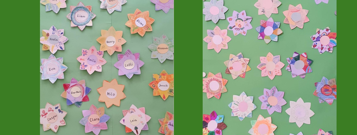 Im Mittelpunkt der Gottesdienste stand die Botschaft, dass jedes Kind einzigartig und besonders ist – so wie jede Blume im Garten ihre eigene Farbe, Form und ihren eigenen Duft hat. Gemeinsam bilden sie einen wunderschönen, bunten Blumengarten. Ein herzlicher Dank geht dabei an Pfarrer Beutel und Pfarrer Leischner für die Mitgestaltung der Gottesdienste. Auch möchte wir uns beim Freundeskreis und den beteiligten Eltern für die Bewirtung der Gäste am Einschulungstag bedanken.