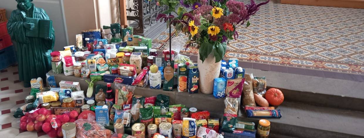Vielen Dank an alle Kinder und ihre Familien, die so zahlreiche Erntegaben mitgebracht haben. Diese wurden vom Leiter der Köthener Tafel, Ronald Kurek, dankbar entgegengenommen. Wir haben uns über seine freundlichen Worte des Dankes am Ende des Gottesdienstes gefreut.