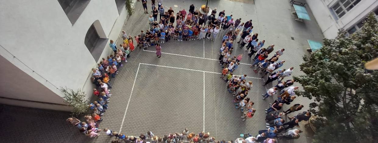 Mit einer kurzen Andacht wurden unsere Schülerinnen und Schüler am ersten Schultag begrüßt. Gemeinsam mit Pfarrer Beutel sangen wir das Lied „Einfach spitze, dass du da bist.“