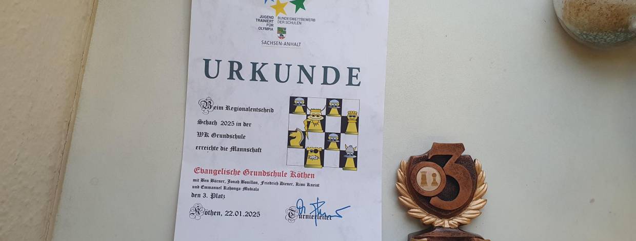 Am Mittwoch, den 22.01.2025, konnten fünf Schüler der Klassenstufe 2 bis 4 unserer evangelischen Grundschule am Regionalentscheid Schach teilnehmen.